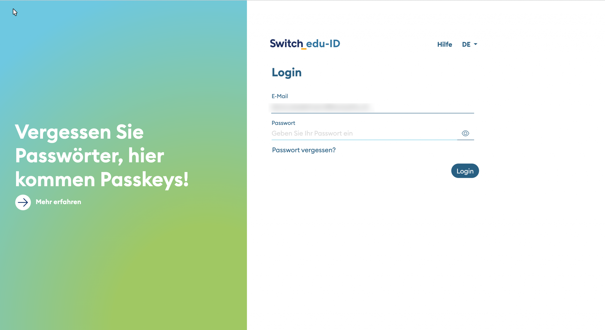 Melden Sie sich bitte über die Switch edu-ID an.
